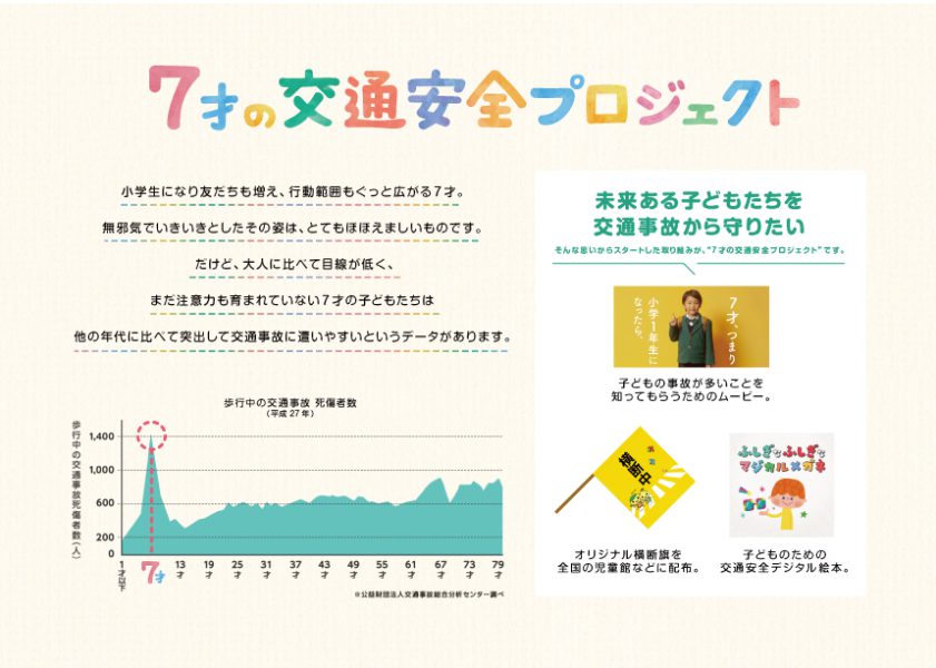 未来ある子どもたちを 交通事故から守りたい そんな思いからスタートした取り組みが、“7才の交通安全プロジェクト”です。
